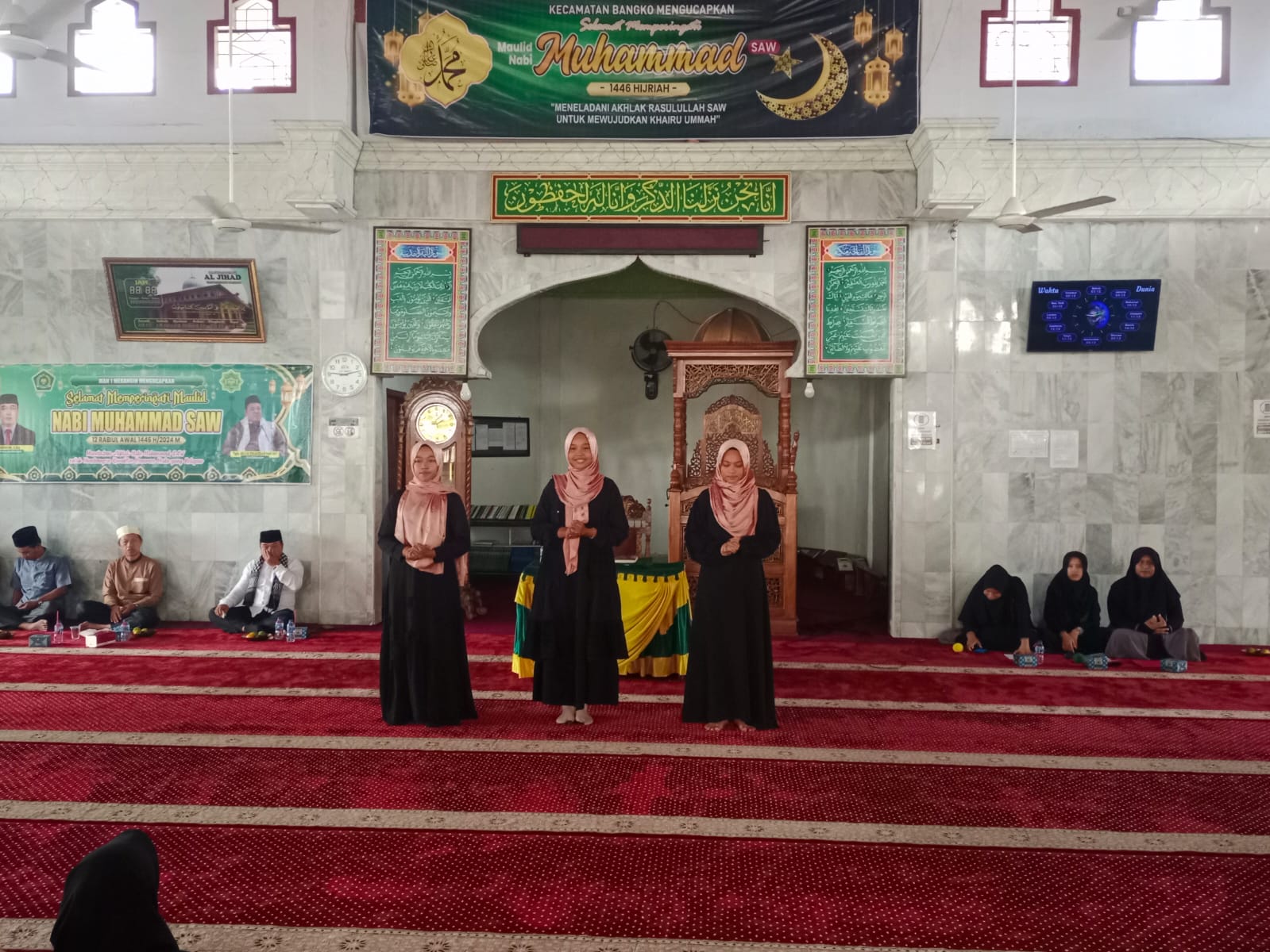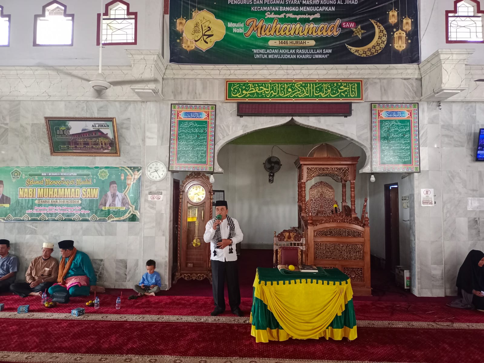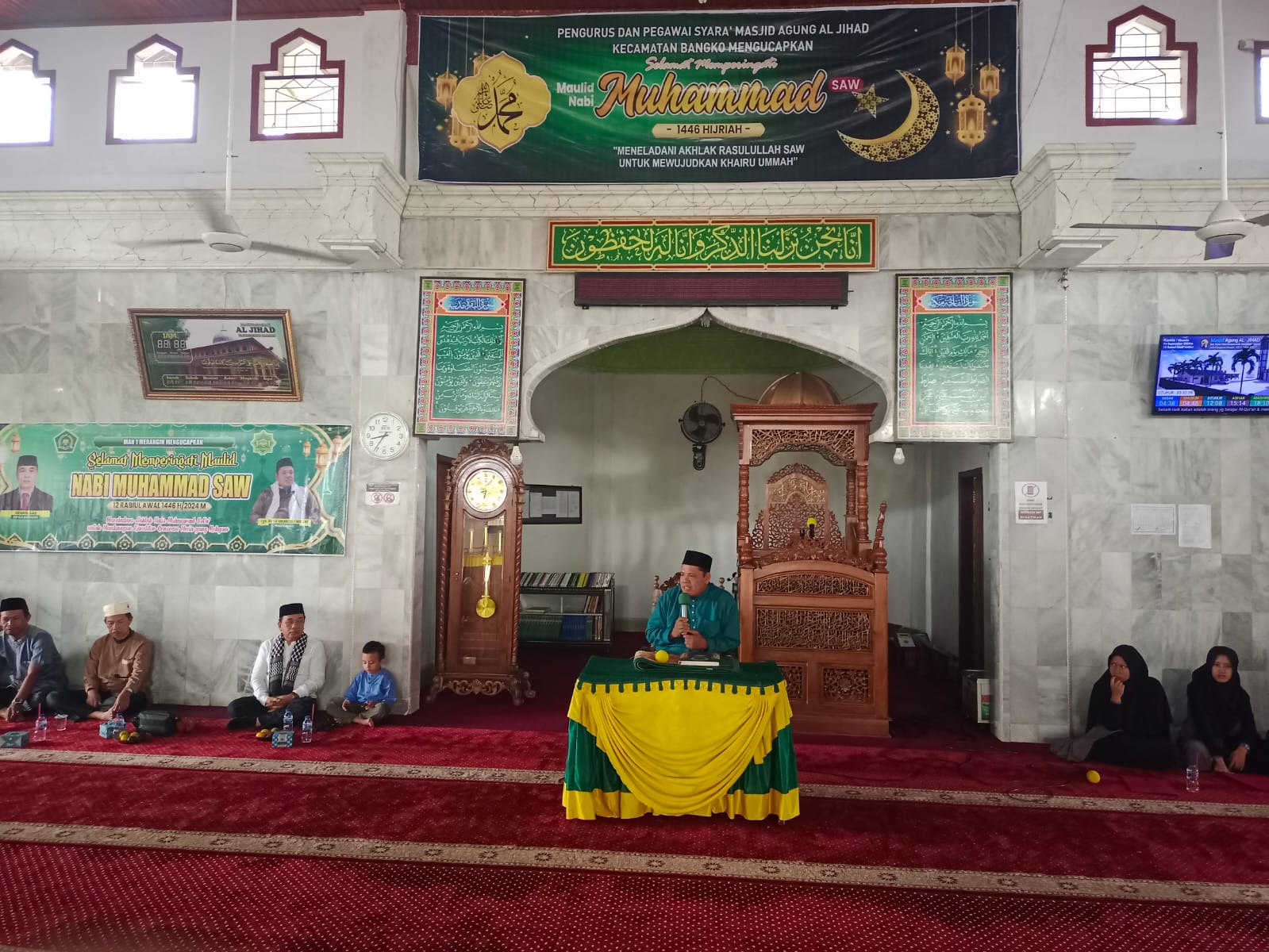 Merangin – Kamis, 19 September 2024. Memasuki bulan Rabiul Awal, sesuai dengan agenda tahunan Rohis An-Najjah MAN 1 Merangin menggelar peringatan Maulid Nabi Muhammad SAW dengan khidmat dan lancar. Kegiatan berlangsung di Masjid Agung Al-Jihad dan dihadiri oleh seluruh civitas akademika MAN 1 Merangin, mulai dari siswa, guru, hingga staf administrasi. Momen ini menjadi kesempatan untuk memperdalam pengetahuan dan menghayati ajaran-ajaran mulia dari Nabi Muhammad SAW.
