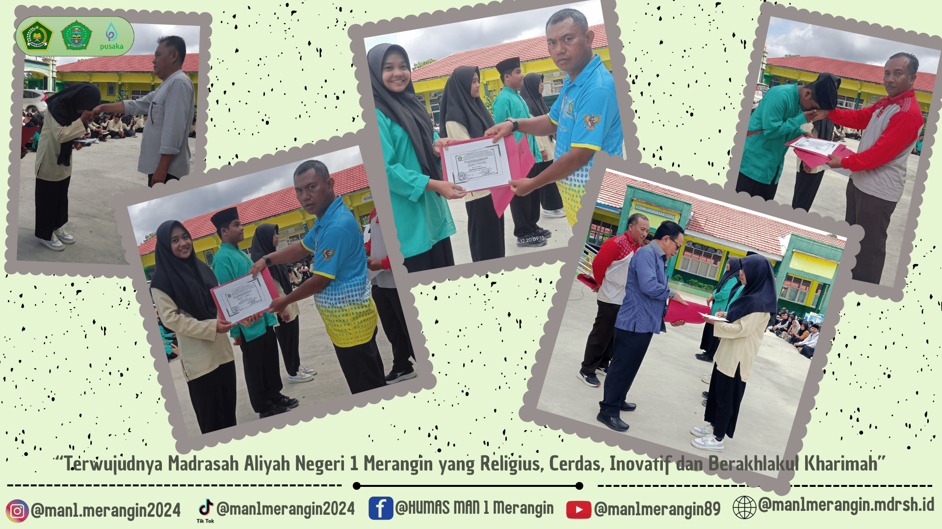 Kepala MAN 1 Merangin, Armain, S.Ag., memberikan pengarahan sekaligus motivasi kepada siswa untuk terus meningkatkan prestasi akademik dan non-akademik. Ucapan terima kasih disampaikan kepada seluruh siswa yang telah bekerja keras selama semester ini. Ia juga mengingatkan pentingnya liburan yang akan datang sebagai waktu untuk istirahat, namun tetap menjaga semangat belajar untuk menghadapi semester berikutnya. Gunakan waktu libur dengan bijak untuk perbaiki kekurangan dan mengejar ketertinggalan di semester ganjil.