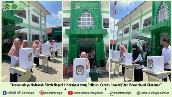 Merangin - Selasa, 21 Oktober 2025. Suasana demokrasi terasa begitu semarak di MAN 1 Merangin) saat pelaksanaan Pemilihan Pengurus OSIM Tahun 2025. Seluruh siswa tampak antusias mengikuti pesta demokrasi tahunan ini sebagai wujud nyata pembelajaran kepemimpinan dan tanggung jawab di lingkungan madrasah.